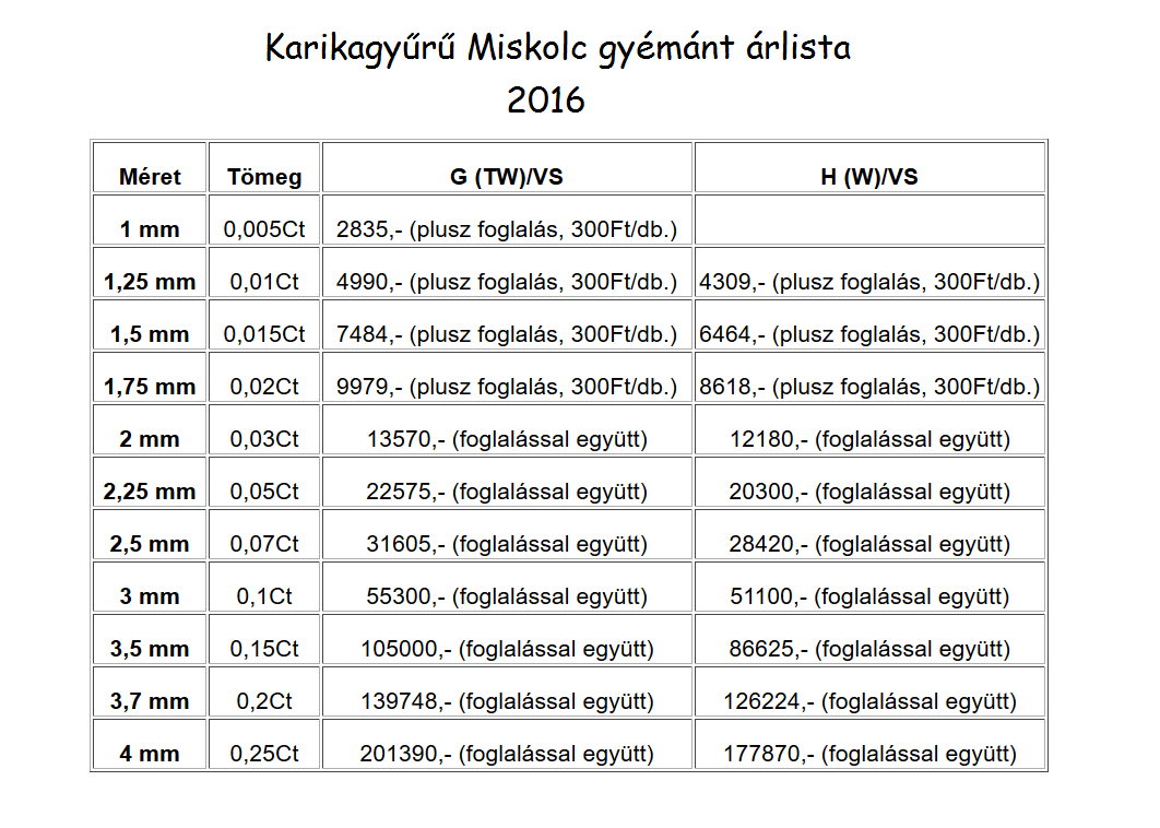 Minden karikagyűrűnket, és eljegyzési gyűrűnket rendelheted cirkóniával vagy gyémánttal is. Itt találhatod AKTUÁLIS GYÉMÁNT ÁRLISTÁNKAT.